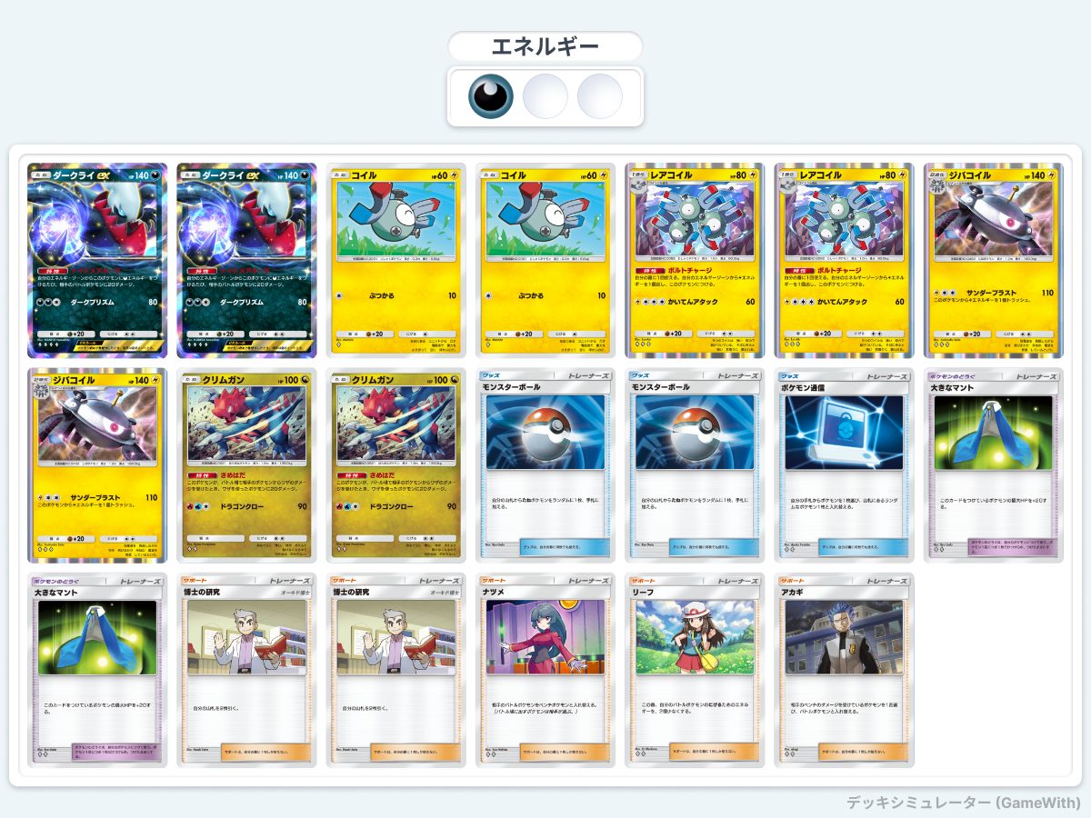 最後に、クリムガンジバコイルデッキは私が考えたデッキで、もしかしたら世には知られていないかも、、?基本的に私は大会の結果などを参考にしてデッキを作るのですが、このデッキだけは1から私が考えました。