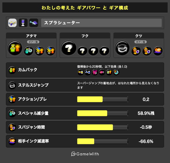 前線シューターに特におすすめのギア構成テンプレートとなっています。